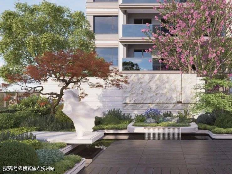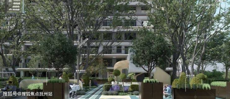 因为全人车分流,留给园林景观的空间也更多,打造约3600㎡立体景观体系。