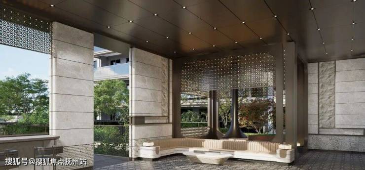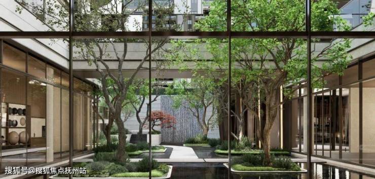 其中中央景观带约2000㎡,涵盖林下休闲区、阳光草坪、秘境水院,并设轻奢会客厅与家庭会客厅。
