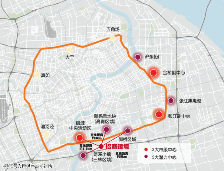 说起三林板块,最早被称为大三林。从定位发展和功能规划来看,三林板块大致可以分为 5 个片区,即前滩国际商务区、三林东杨思地段、三林南滨江、三林南筠溪小镇、以及招商臻境所在的三林南板块。