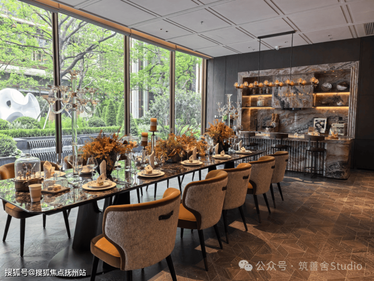 下沉庭院汲取西班牙阿尔罕布拉宫的精髓,阵列跳泉错落有致,乌桕与油橄榄相映成趣。幻影蓝水台与高艺术雕塑重现宫廷水轴的尊贵仪制,呼应庭院的珍贵,为璀璨生活埋下伏笔。三时有花,四季见绿,每一次驻足,皆是一场与自然和艺术的亲密对话。