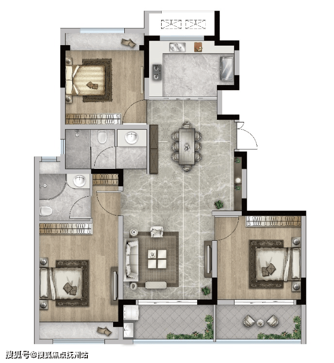 ⚜️飞机户型 卧室分列两侧角落,布局合理,家庭成员互不干扰