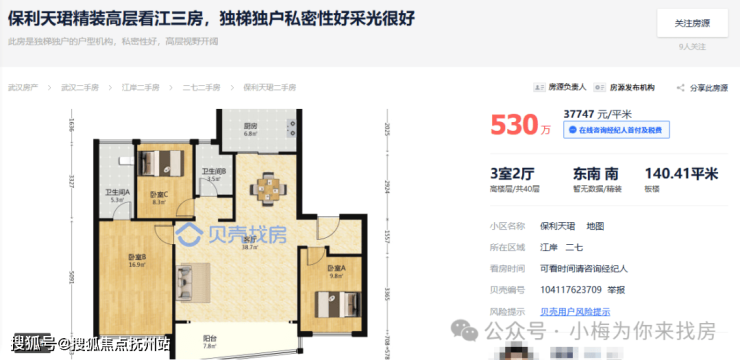 🏠面积140平,挂530万,(价格可谈)三房二厅二卫,单价30000多。小区还有几套同户型的房源。目前这个房子是小区同户型最便宜的。也有其它楼层可以对比。 预算在530万左右这个房子必看。(如果想咨询详细信息可以点开文字后面的链接,里面有详细图片和视频。)贝壳找房丨二手房新房租房装修