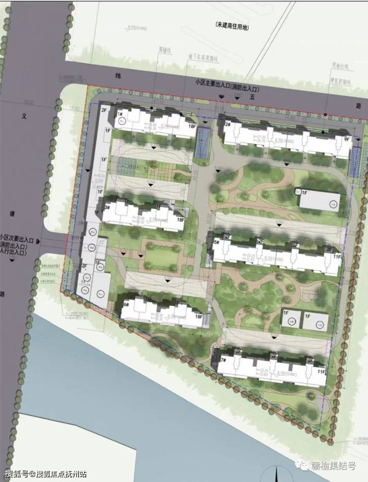 小区北面为主主入口、西面为次出入口