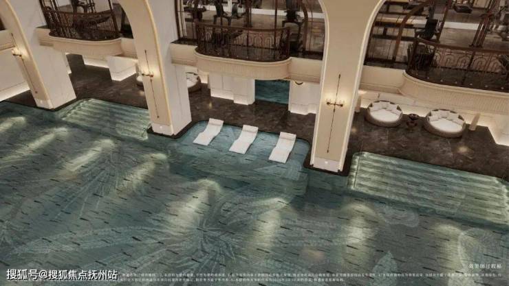 游养一体水疗花园——泳池 X 水疗池,打造8米挑高全景花园泳池(4泳道国标赛事级泳池)