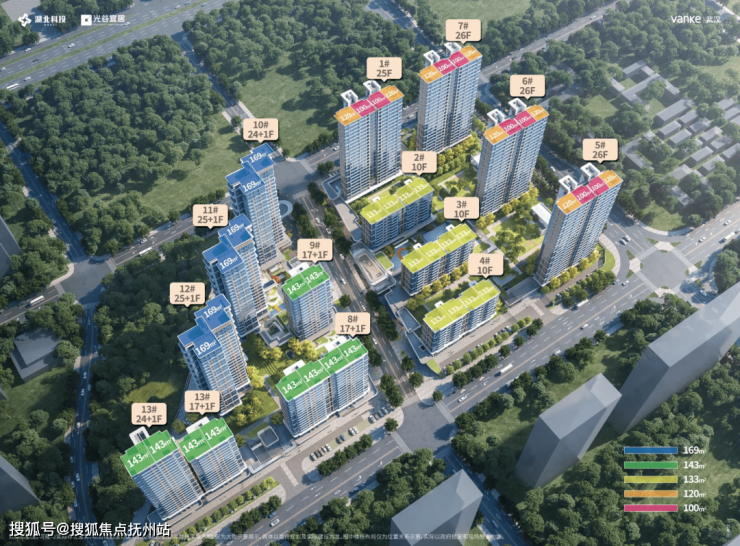 户型产品上,主打建面约100-169㎡全维度三至四房,创新“南厅北院+X空间”“双U全景舱”设计,户均赠送约20.5㎡,部分户型得房率超100%,层高3.05-3.15米,精装交付(含中央空调、地暖),适配不同家庭的居住需求。