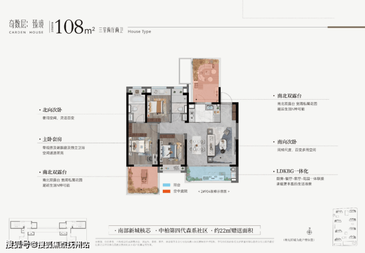 设计亮点:第四代森系社区,奇偶层错位庭院布局(奇数层南向/270°转角,偶数层南北双庭院)