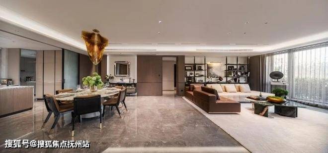 户型上来看,建面约255平户型的整体风格以尊贵为主题,墙面采用深色带有山纹的材质,结合纹理独特的石材,通过色彩材质的碰撞,展现高品质别致的生活方式。