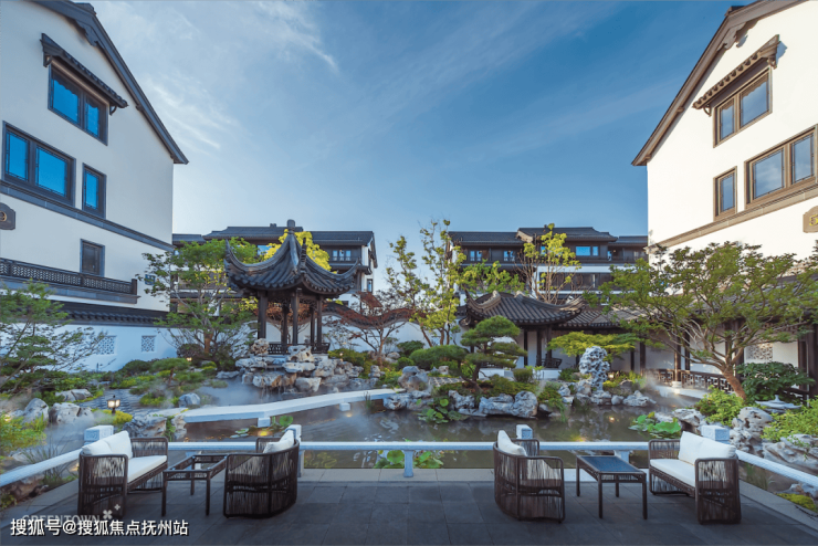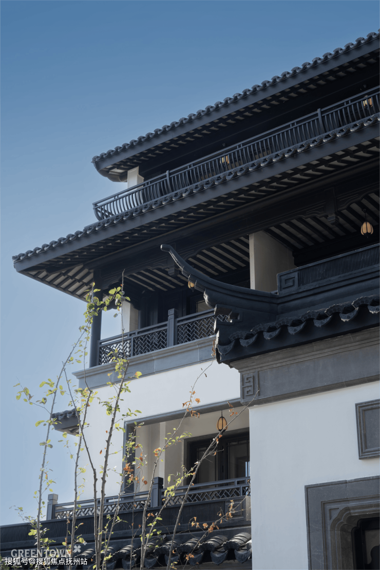 随处可见翩翩雅致的飞檐,赋予建筑以庄重威仪;灰瓦坡顶与小青瓦、通透玻璃、咖色饰板交相辉映,呼应运河岸流传千年的古建名宅,也展现着东方中式的三重神韵。