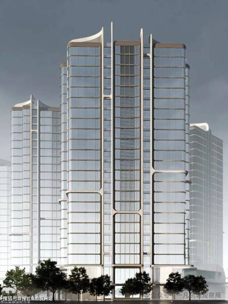独特的弧形转角镶嵌鎏金铝线条,使建筑宛如一座“流动的发光体”矗立于钱塘江南岸。