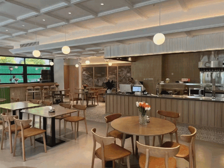 在一楼的社区综合服务站,配置了便民中心接待台,可以提供一站式的社区综合服务。另外,这里还有幸福食堂,便利解决吃饭问题。