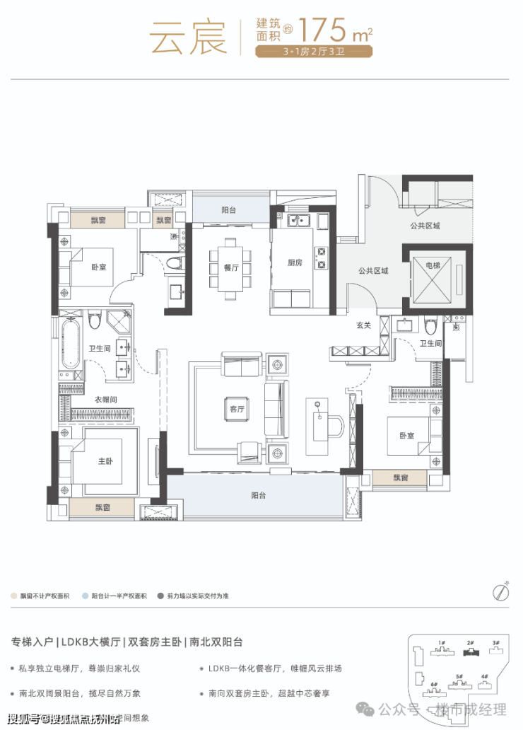 建筑面积约125~175㎡的全通透宽境阔宅,大面宽大横厅大阳台大套房