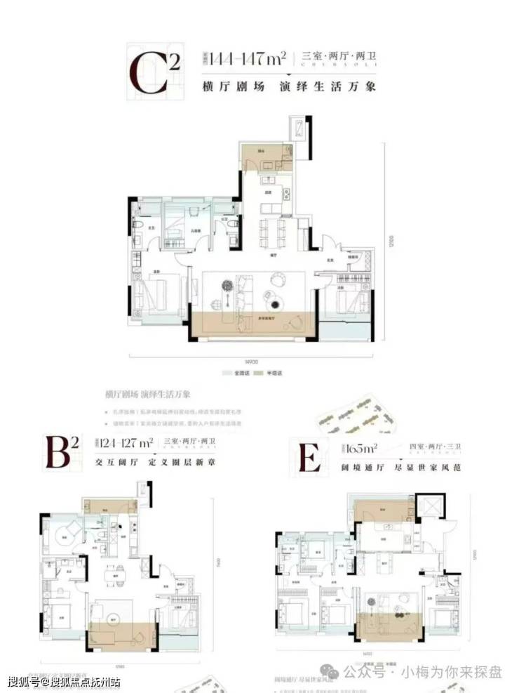 目前预售证已拿,已经可以认购了,所有楼栋都是2梯2户,首开11号楼和12号楼,面积段106—124—144-—154——165。户型图如下