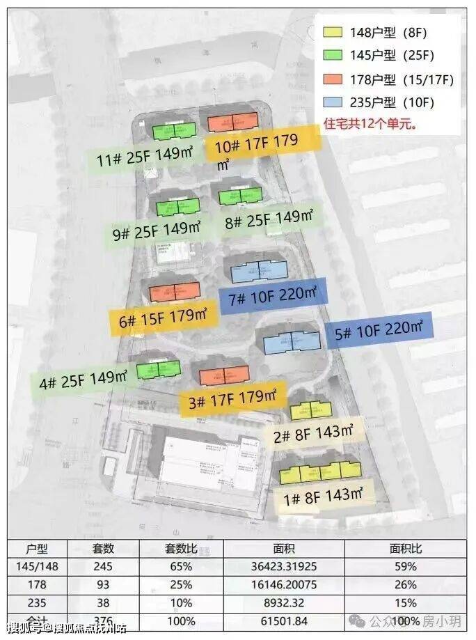 规划楼栋数及户数:11栋住宅(共376户)