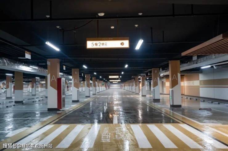 清晰的柱面导视标识提供清晰的方向指引。车道两侧设置人行通道,人车分流,动静分明。墙面设计中严选色系,通过灯光、材质等手法,打造出既现代又温馨的地库空间。