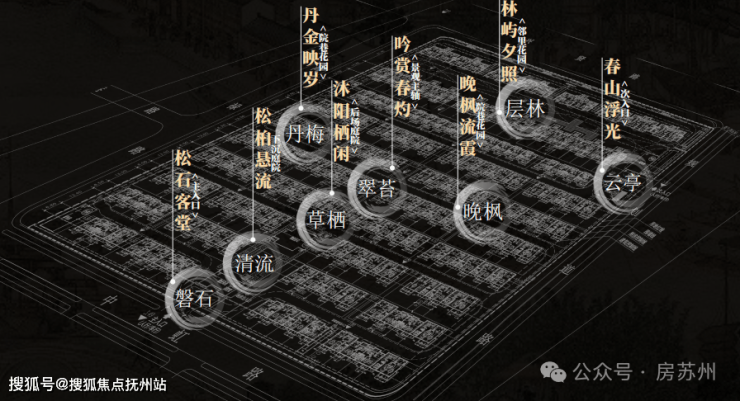 大区营造1轴3心8大景观。以“京杭古韵,繁华姑苏”为设计主题,汲取<姑苏繁华图>八景的东方设计美学语言,营造闲适自在的山水园林度假氛围。