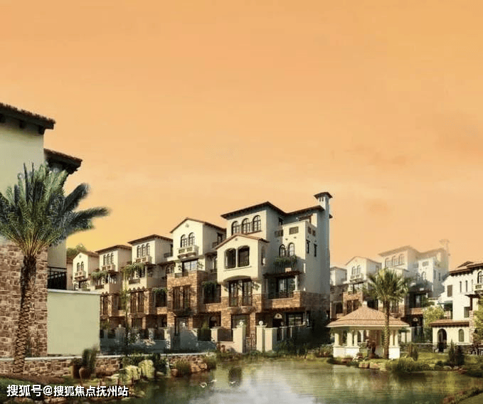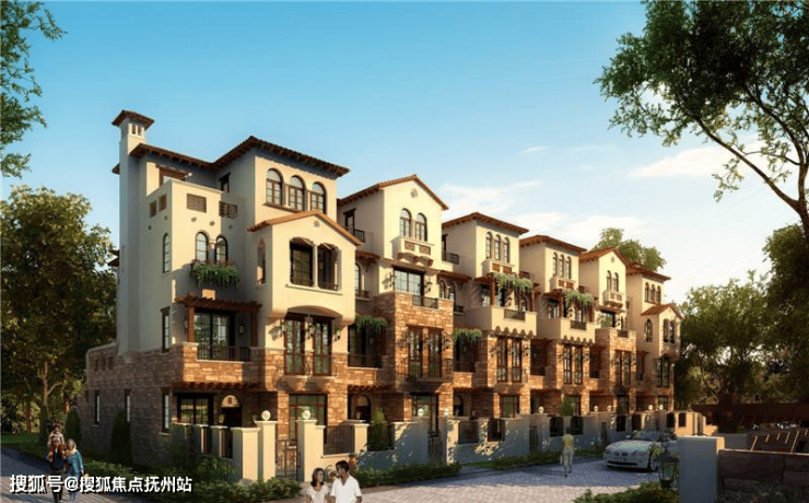 「同润•蓝美俊庭」采用南加州的建筑风格,外立面采用文化石和暖黄色涂料,搭配红色的筒瓦、烟囱、铁艺栏杆等建筑,尽现南加州原乡风情。