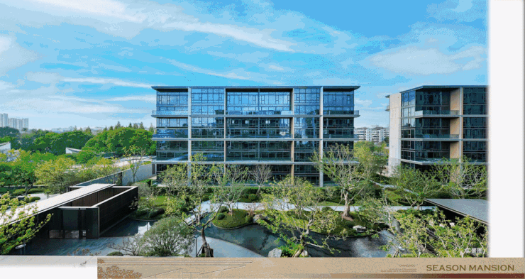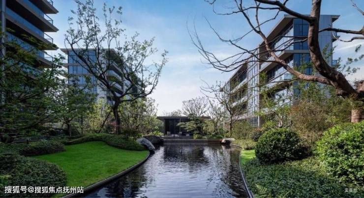 以《千里江山图》为蓝本,匠造「三轴五桥十二境」园林景观,保留原生堤岸58棵香樟,甄选珍稀古树名木、景石点缀其间,水系蜿蜒串联,将自然意境凝练于一园之中,构建起可栖、可赏、可传世的精神居所。
