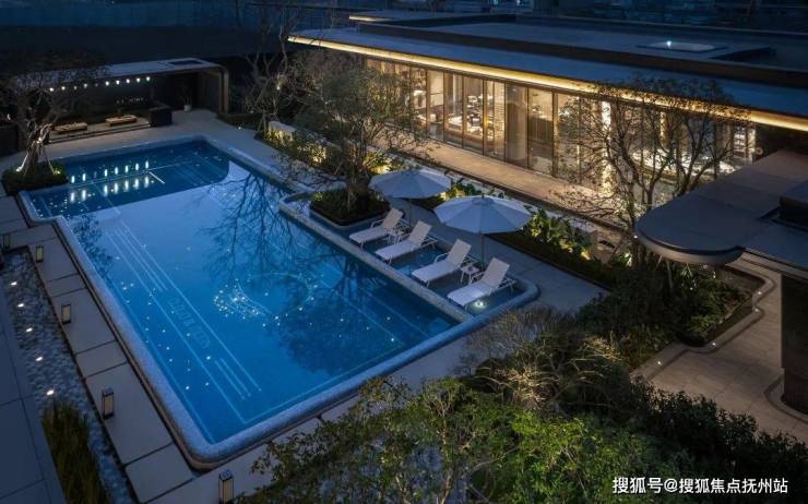 再往里走,实景园林已经呈现。跌水潺潺,泳池水波粼粼,未来这些都是自家楼下的风景不同于多数小区的景观水池、普通泳池,而是在泳池旁引入下沉庭院、景观廊架、躺椅、吧台等,形成“MIX度假泳池”。