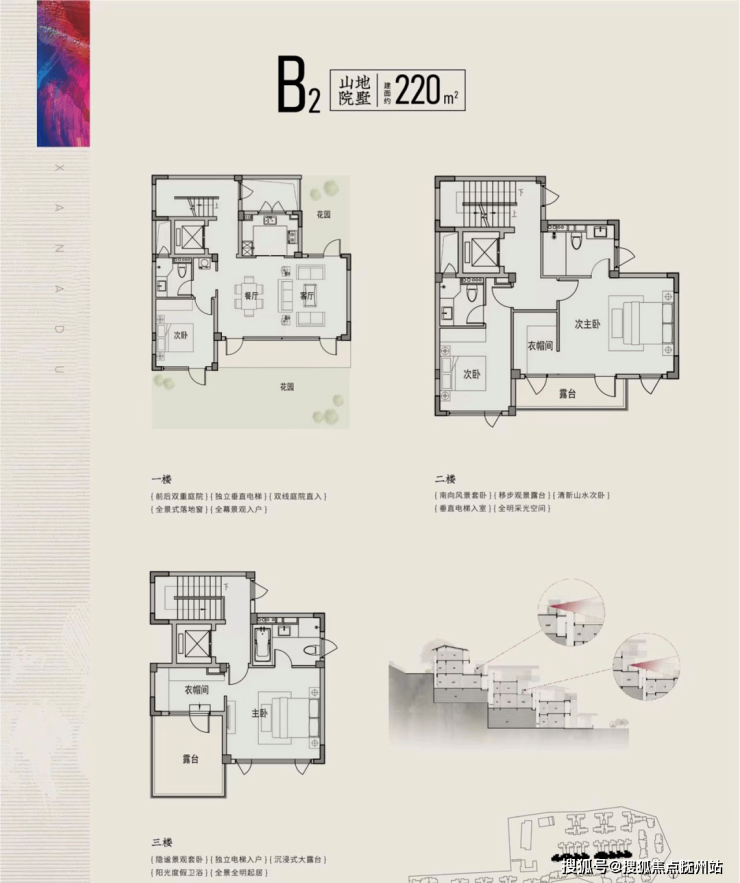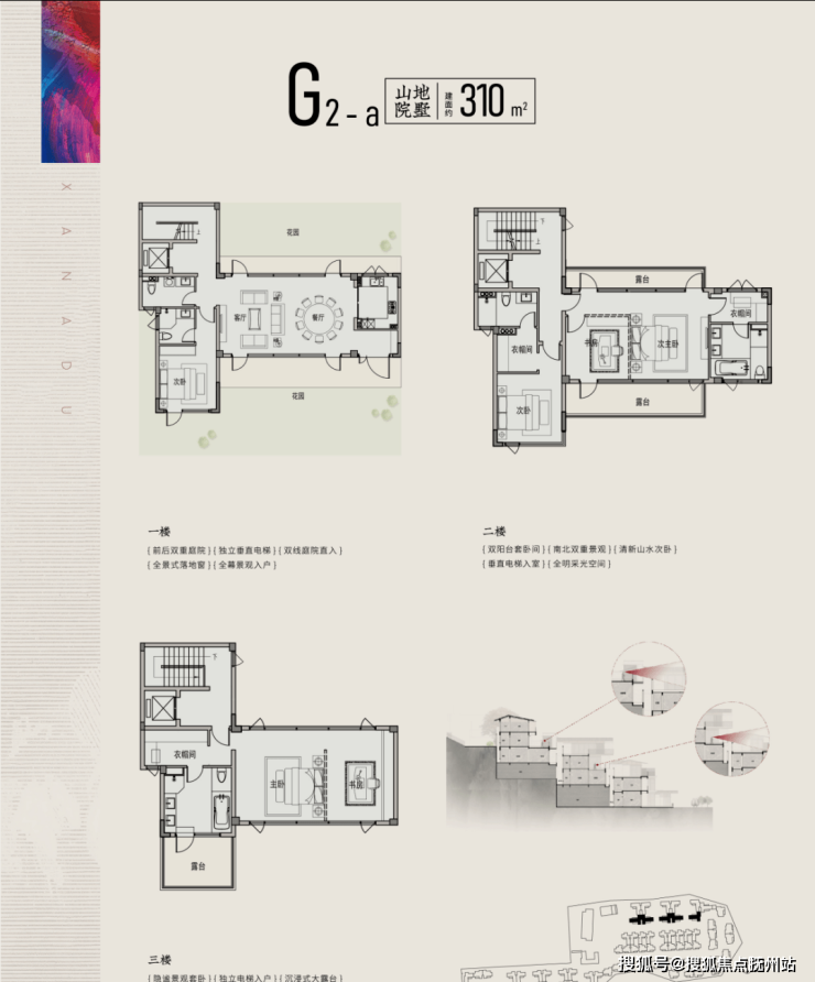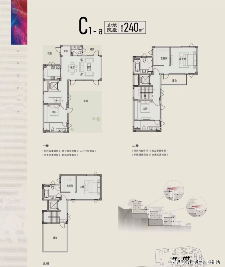 【产品规划】:首开地块为A1湖晓云墅,位于仙女湖西侧,总用地面积约3万㎡,总建筑面积约4.36万㎡。规划16幢3F湖山院墅,总户数81户,地上三层(一层3.4米、二层3米、三层2.9米+坡屋顶),地下一层(层高3.1米-6.6米)