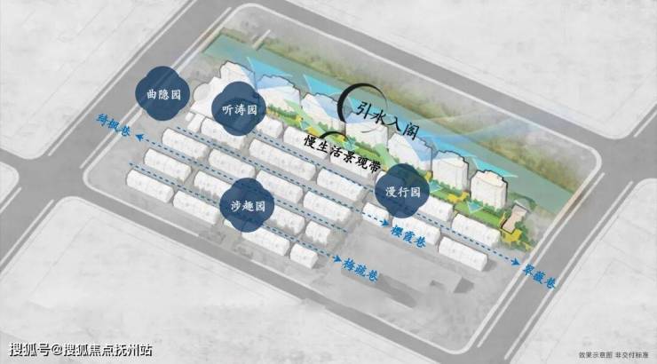 社区内部规划同样匠心独具:西侧打造下沉式庭院,东南角有已建成的幼儿园,南面设主出入口,东侧预留人行通道,形成动静分区的岛居格局。