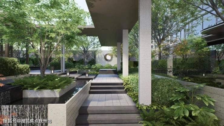 长江投开丨万科·东合映象大门主入口位于小区东侧,阔气的大门配以涌泉水景、名贵树种,还有外挑廊檐与环岛落客区搭配,确保小区业主实现无风雨归家。