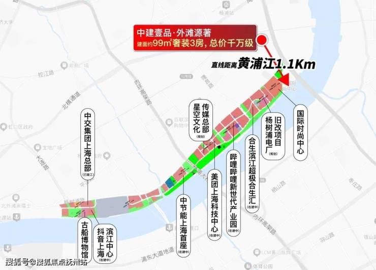 项目与黄浦江直线距离约1.1公里,项目与国际时尚中心直线距离不到1公里,与超极合生汇(在建)直线距离约1.2公里,可谓是近水楼台。