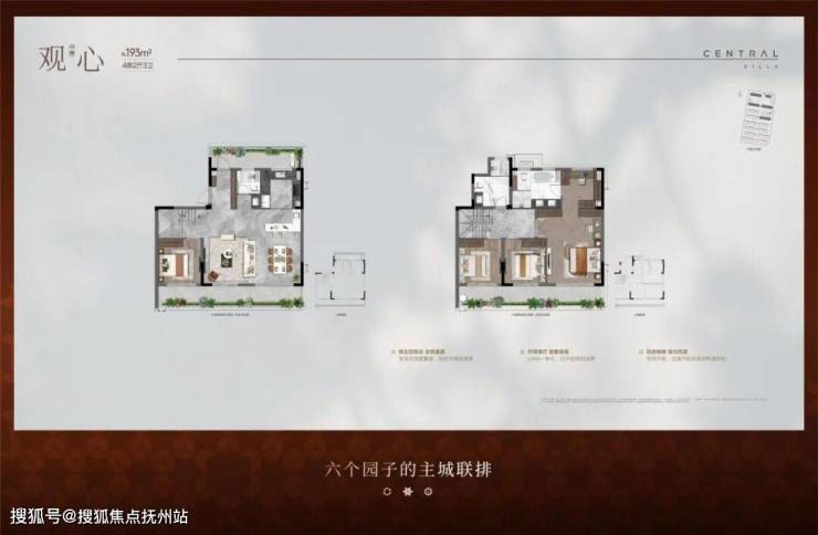 项目主力打造建面约195-245㎡主城联排、建面约169-193㎡低密叠加。