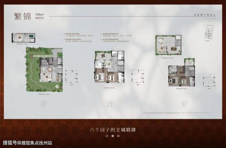 建面约245㎡联排,4房3厅6卫,南向三开间格局,最大程度提高采光通风效果,二层北侧设计超大露台,适合瞰景赏月,三层采用双套房设计,兼具实用性与舒适性,另有约90-168㎡宽阔庭院和约133-157㎡灵活空间可自行改造。
