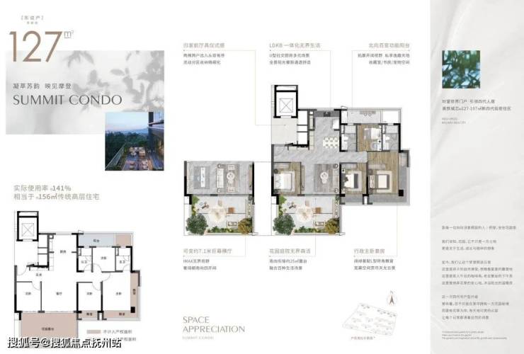 例如建面约127㎡:可变约7.1m巨幕横厅,实际使用面积相当于传统住宅156㎡传统高层住宅。