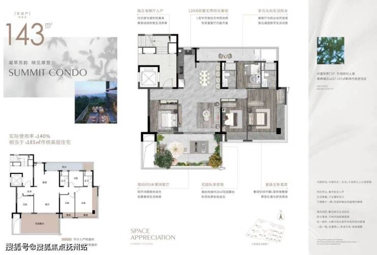建面约143㎡:欢聚无界约29㎡花园露台,实际使用面积相当于传统住宅185㎡传统高层住宅。