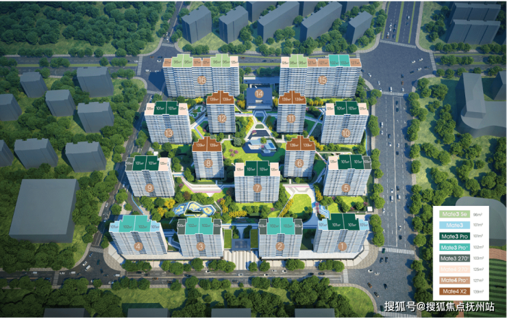 项目立面上浅蓝色玻璃+银白色铝板+精致线条搭配出高级感,几乎是很多4万+改善盘才有的气质。
