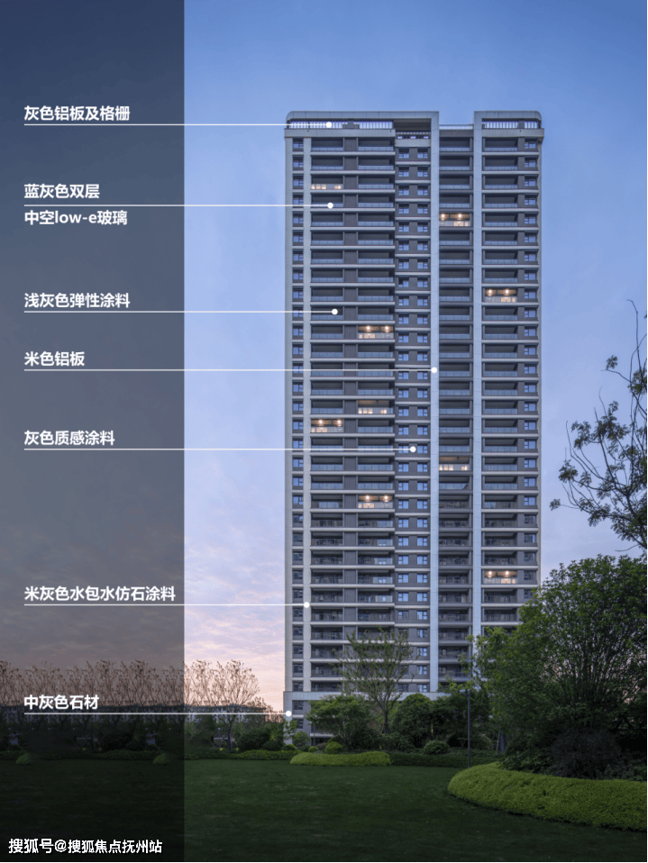 设计师精心挑选立面材质,整体立面框架以铝板打造L型线条,硬朗笔挺,强化立体感与品质感。基座石材稳重,门头铝板精致,凸显项目品质。通过材质与设计的完美融合,展现了建筑的精致与卓越,一眼即见品质与力量。