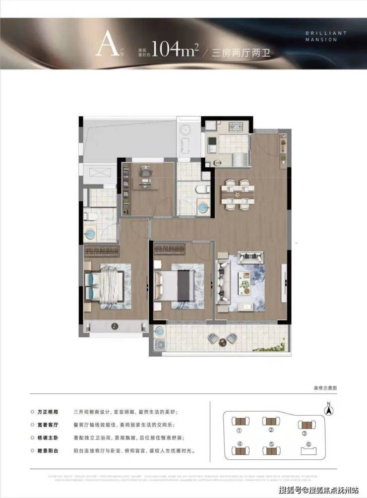 建筑面积约104-131㎡时代境邸,覆盖婚房到改善的各种家庭。其中建筑面积约104㎡户型为滨江少有的三房户型,