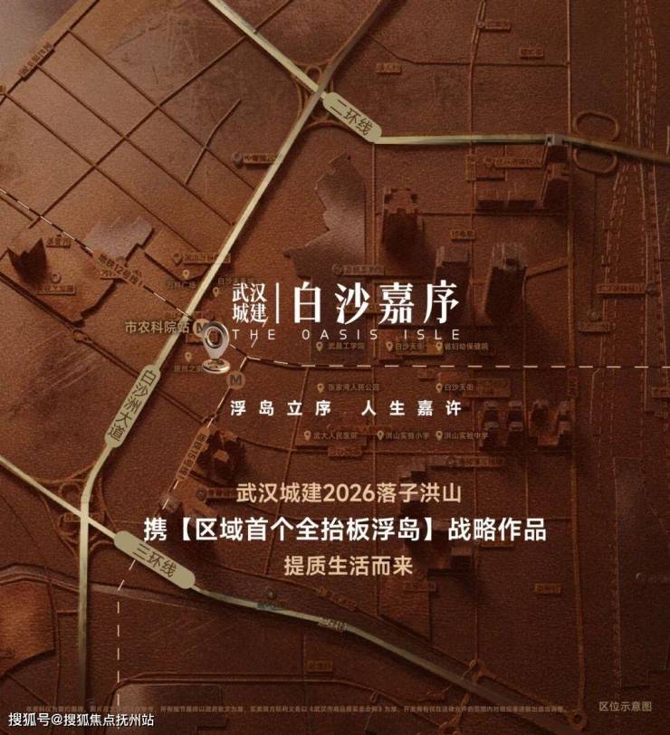 武汉城建·白沙嘉序立足区域核心地位,举步即达12号线市农科院站(2026年上半年开通),洪山万科广场、白沙天街、白沙未来城多商圈环伺,湖北省人民医院洪山院区、湖北省妇幼保健院洪山院区双三甲近享,洪山实验小学、洪山实验中学在侧,全维超配资源集萃,以此礼献一座全抬板浮岛花园,让繁华与静谧、效率与诗意,于此达成平衡。