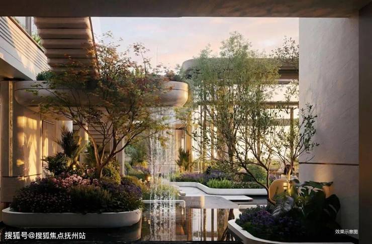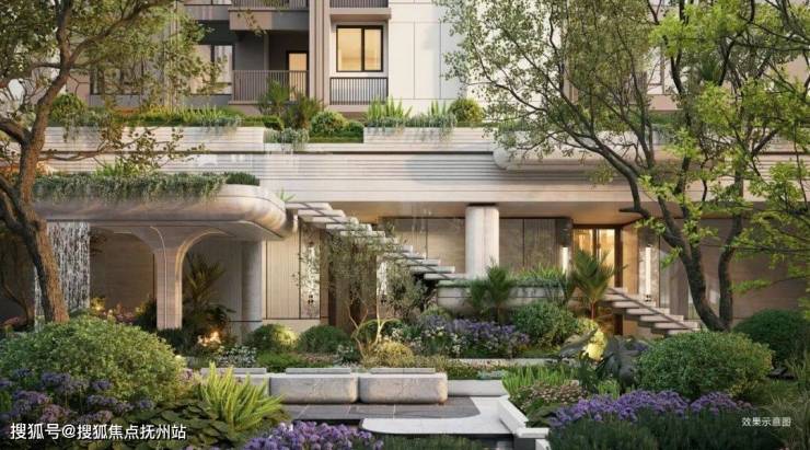 下沉会所以叠水、浮岛花池、悬浮楼梯等营造层次,抬板之上构建邻里共享的“绿色客厅”,铺展互动阳光草坪、层次绿景、儿童乐园及空中休闲区等,形成绿意盎然、亲子互动、邻里社交相融共生的立体景观系统。