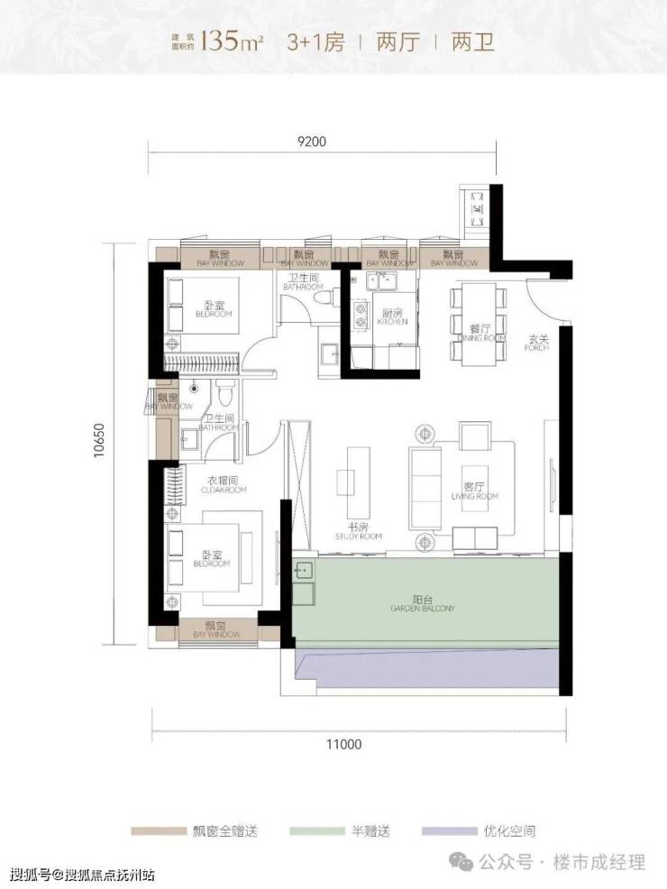 超90%得房率,大面宽主卧套房,南向联屏阳台