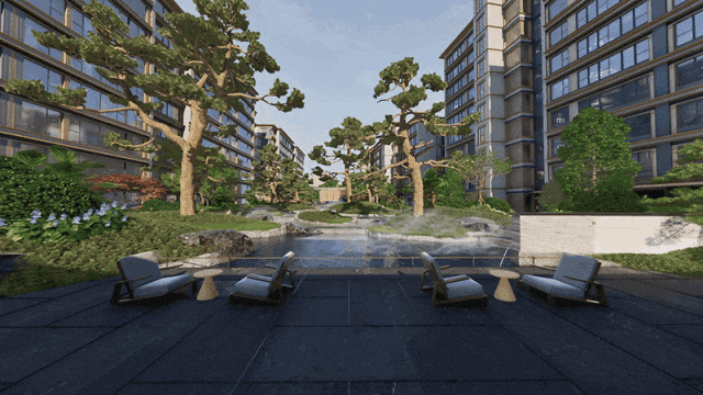 8号楼如同天然取景框,将中央水院、亭台与水景勾勒的立体园境,悉数珍藏为私人视界。楼座四周,黑松、金桂、银杏、榉树等珍稀林木荟萃一堂,以老南通盆景文化为基底,打造独属老南通的特色佳境。四季更迭,窗外景致亦随之流转,演绎着价值非凡的自然艺术盛宴。