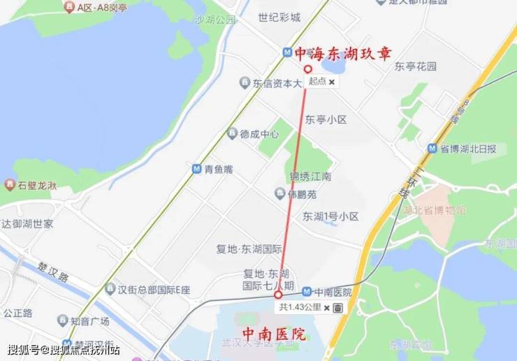 医疗上,项目与三甲医院武汉大学中南医院直线距离约1.4公里,地铁1站路,非常近。