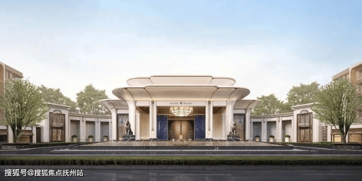 「玉兰门庭」摩登飘逸,环抱式落客前场,大师定制非遗掐丝珐琅门钹,流转温润光华,敬呈归家尊崇礼序,自此启幕生活的华贵序章。