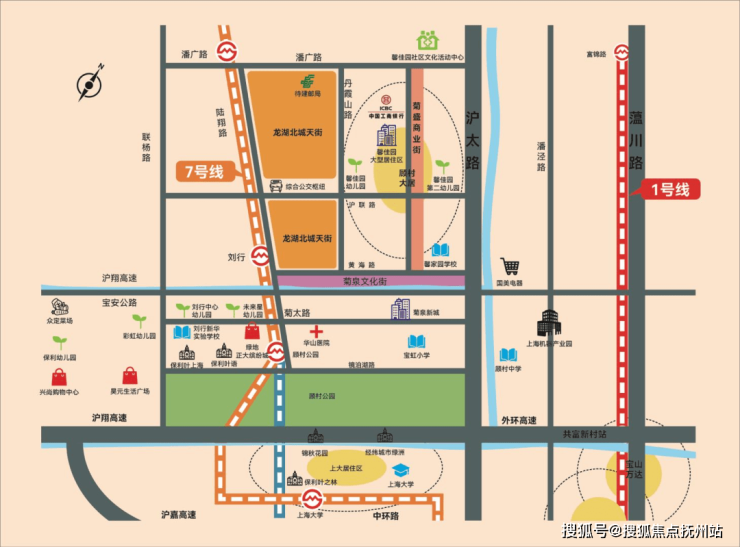 地铁交通:7号线刘行站1号口龙湖天街,再步行至北区6号楼1615、1616室