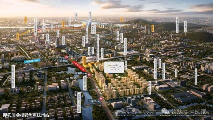 整个楼盘体量有约63万方,南北向纵跨了9号线兴元路站和康信路站两个地铁站。