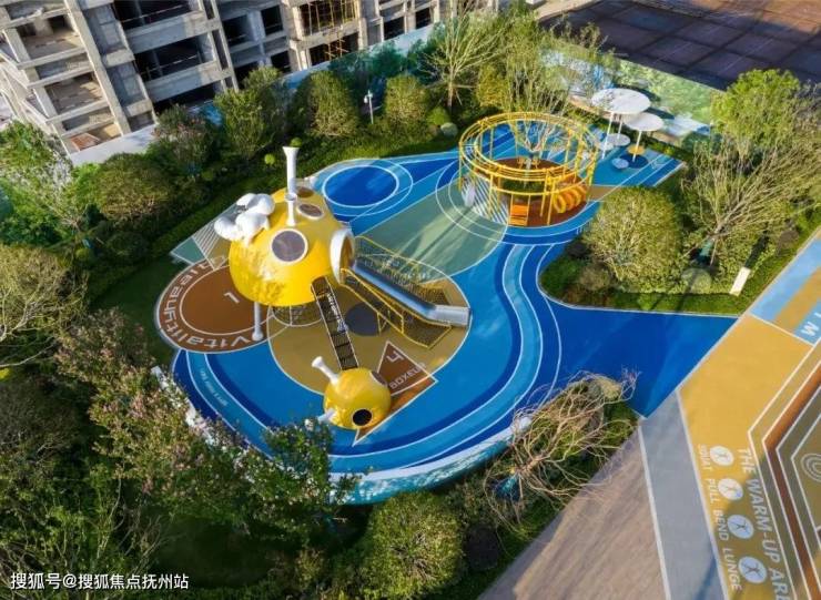较大程度地开发利用每一处可创造欢乐的角落,地面铺装采用活力蓝色和元气橙色的色系组合设计场地,赋予场地无限的幻想。利用直线、圆环进行视线的拉伸和收缩,巧妙地运用空间布局和多彩的环境变化,使整个空间层次错落有序。