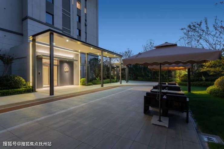 昭示性入口水景对称于中心台阶,结合涌泉叠级呈现,先声夺人强调入口仪式感,落客入口氛围在灯光涌泉的烘托下充分彰显。拾级而上,尊贵的归家之旅也由此展开。