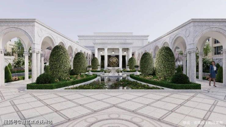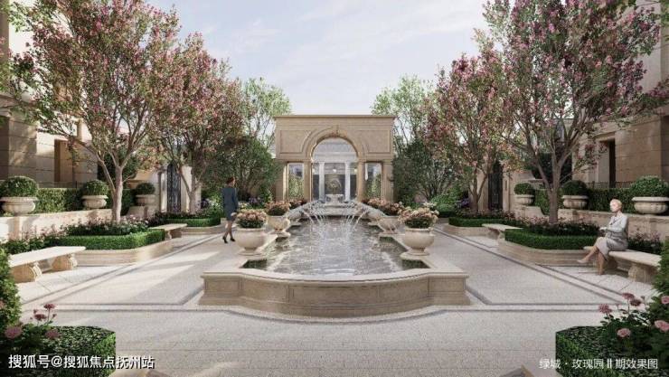 融入法式名园经典设计,以玫瑰之门昭示中轴仪式,拱券回廊、中心女神花园、复刻经典的三大下沉庭院等馥郁场景,编织法式浪漫的恒美风景。