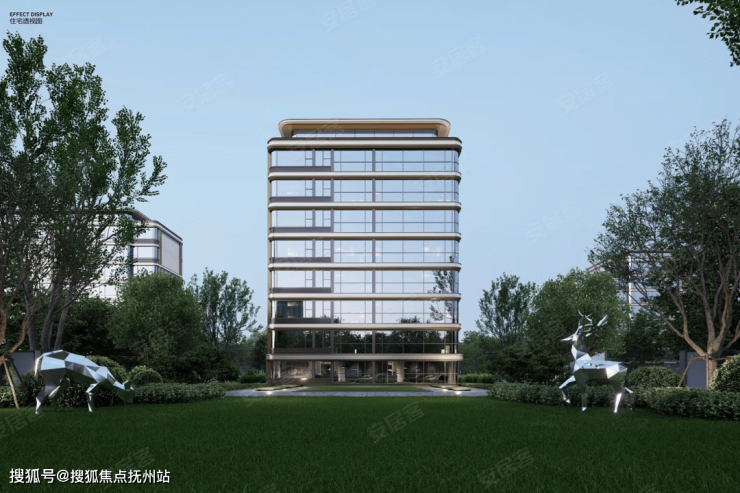外立面采用大面积玻璃+金属线条,轻盈的弧线挑檐,整体颜值在线。