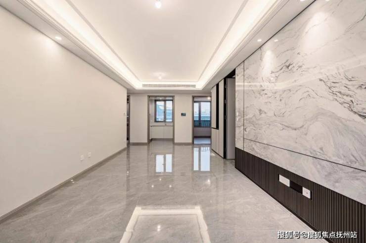 2、客厅双面背景墙:现在很多项目,连电视机背景墙都不做的情况下,翠栖府出人意料地做到“双背景墙”——电视机背景墙+沙发背景墙,开创“双背景墙”时代,其中电视机背景墙是大片岩板上墙,而沙发背景墙则是硬包的形式。提的一说的还有,主卧的背景墙,翠栖府这次也是“交付标准”。
