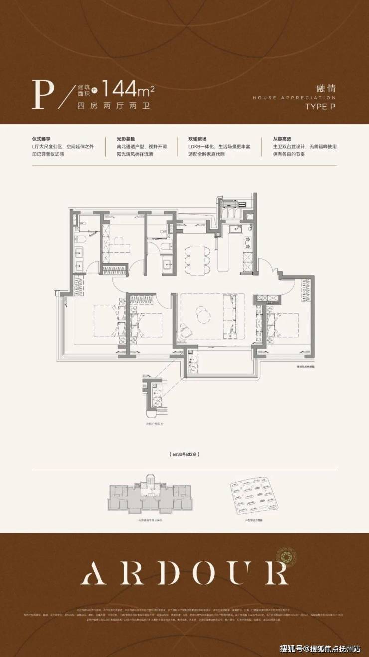 再来看下建面约144㎡4房,部分装标是有所升级的。