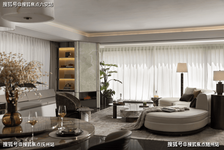 尊崇礼序:环岛落客区与约9米高超宽幅珠帘水幕墙呼应,约8.5米层高奢华大堂,共同复刻超五星酒店式的归家体验