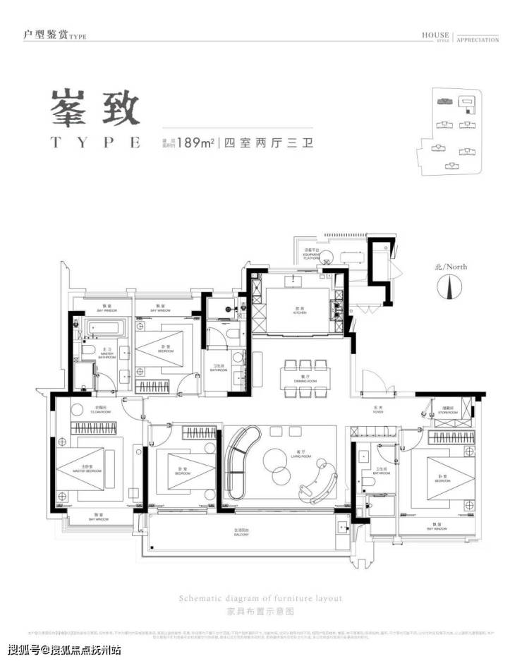 建面约189㎡户型效果图