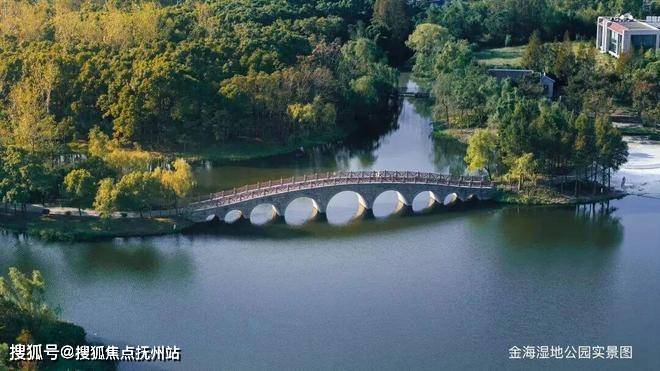 生态方面,项目紧邻约43.38万方金海湿地公园,约等于56个标准足球场大小,也是项目一大卖点,日常遛娃或茶余饭后散步休憩的好去处;